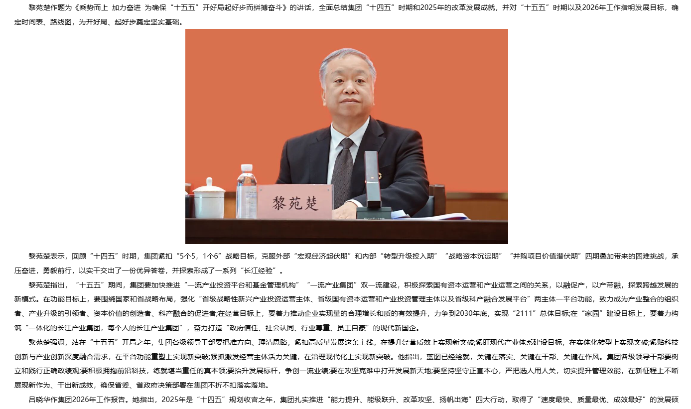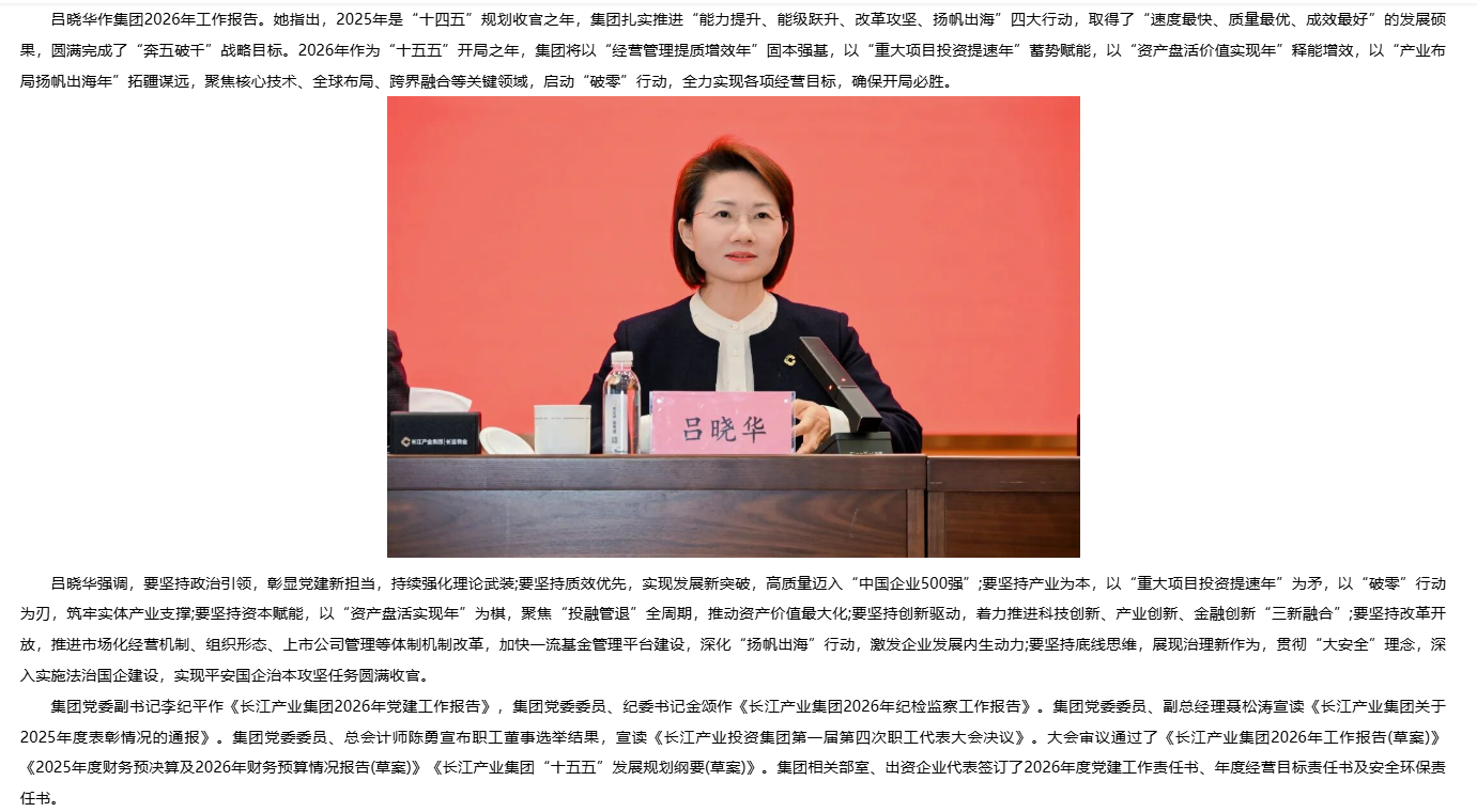 乘勢而上 加力奮進 長江產(chǎn)業(yè)集團召開2026年工作會議暨第一屆職工代表大會第四次會議